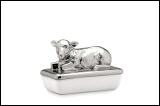 Dose mit Lamm-Deckel aus Porzellan in Silberglanz. Die Dose hat die Größe 21,3 x 12,2 x 14,3 cm. 33,60 EUR