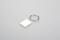 Versilberter, gravurfähiger Schlüsselangänger, rechteckig. Der Schlüsselanhänger hat eine Maße von 2,5 cm x 3,5 cm.