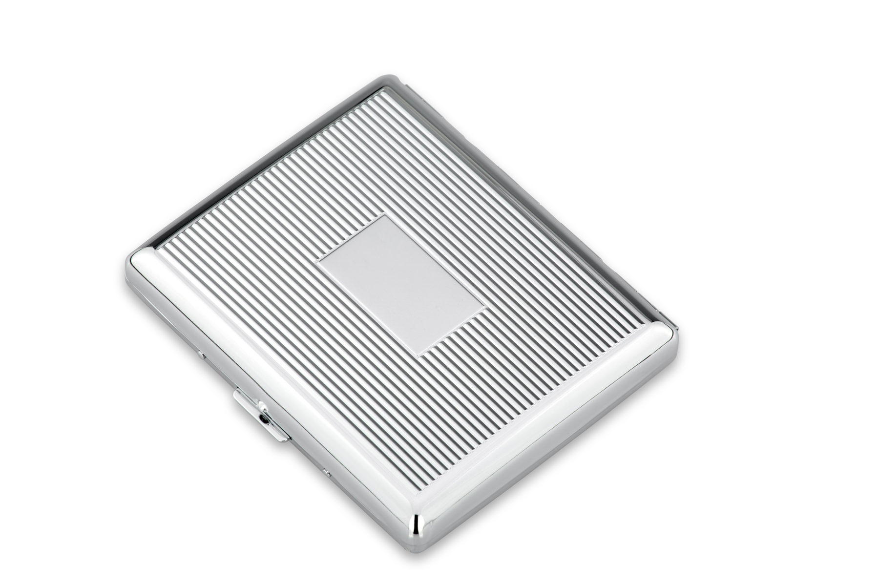 Rechteckiges Zigarettenetui, Faden, für 20 Zigaretten, doppelt bestückbar, aus verchromtem Material.